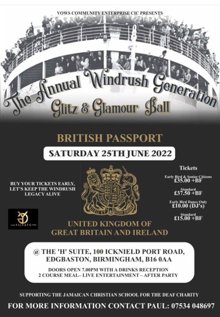 - The Annual Windrush Generation Glitz and Glamour Ball in Birmingham on Saturday 25th June.