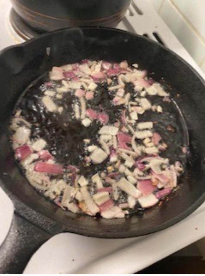 Cut the onions into small pieces, add some oil into the pan and add the onion when oil is hot